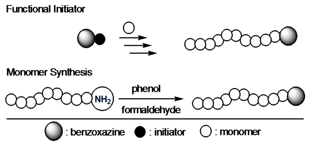 Performing polymerization of a particular monomer using a benzoxazine derivative possessing suitable initiating sites (functional initiator).