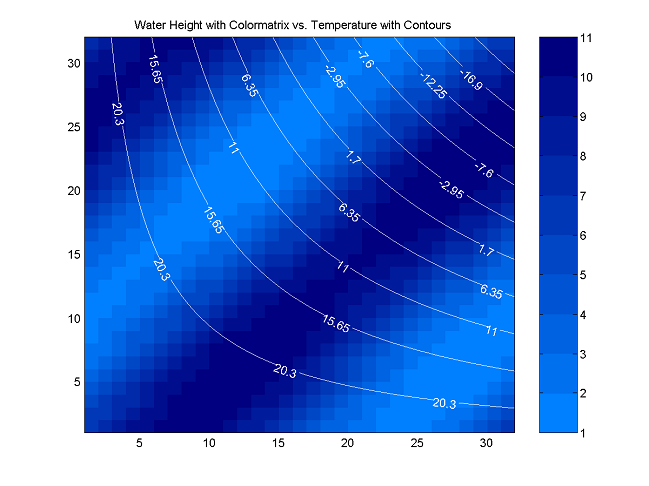 Figure4. Colormatrix for Water Height and Contours for Temperature |