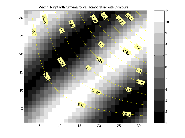 Figure5. Graymatrix for Water Height and Contours for Temperature |